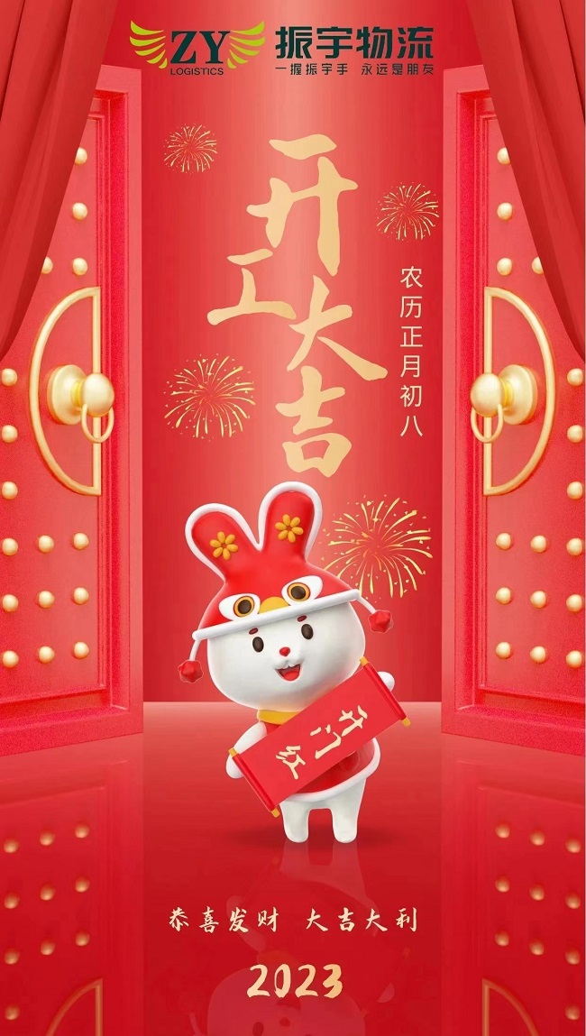 振宇物流集團將于2023年1月29日(正月初八)正式開工,全體員工已迅速進入工作崗位,所有車輛整裝待發。在新的一年里將以嶄新的面貌繼續為您提供優質的物流與供應鏈服務,歡迎廣大客戶朋友提前做好收發貨安排。