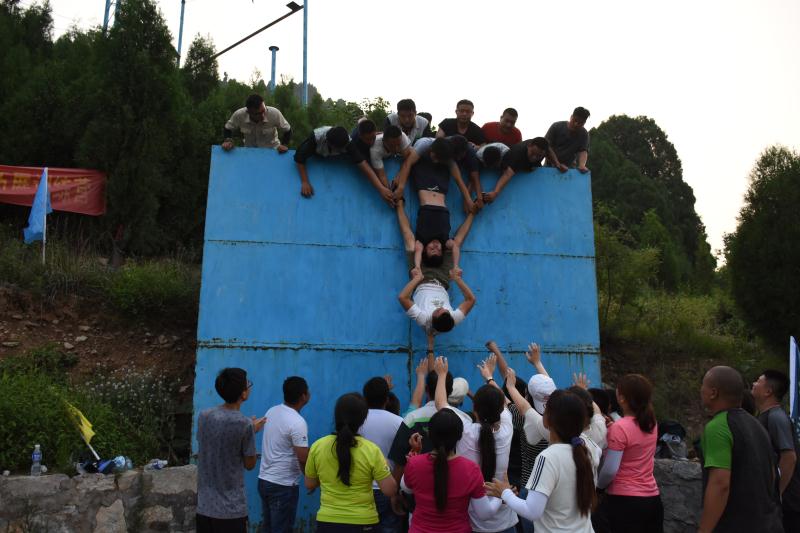 在訓練過程中,全體員工被分為三支隊伍并展開了激烈的競爭,8米的高空斷橋,真正的個人挑戰,敢于挑戰便是對自己的一大突破,只有勇 于不斷的去突破自己,才能在工作、生活中有所成長,有所改變;所有學員站在1.5高的背摔臺上背對著大家,身體筆直的倒下,由下面的伙 伴將其接住。面對這個挑戰,敢不敢將自己的后背交給隊友?敢不敢充分的相信隊友?如何去建立信任……通過訓練活動讓員工們體驗到解 決問題的方法,員工們之間面對同樣一個問題所表現出來的態度,如何達到共識,并進行配合共同解決。最終大家齊心協力在規定時間內完 成了超音速、背摔、斷橋、有軌電車、求生墻等眾多項目。