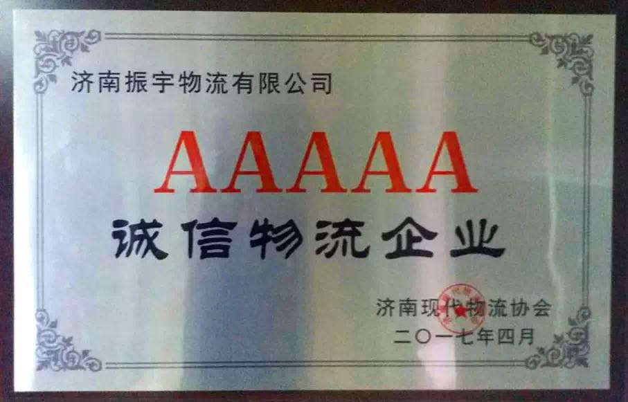 2017年5月10日,濟(jì)南現(xiàn)代物流協(xié)會(huì)2017年年會(huì)暨表彰大會(huì)在濟(jì)南祥云酒店隆重召開。經(jīng)過嚴(yán)格評(píng)選,濟(jì)南振宇物流榮獲“5A級(jí)誠(chéng)信物流企業(yè)”、“濟(jì)南市優(yōu)秀物流企業(yè)”榮譽(yù)稱號(hào)。
