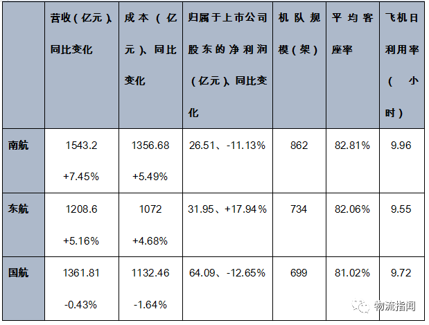 濟南物流公司:三大航司公布2019年業績,南航營收最高