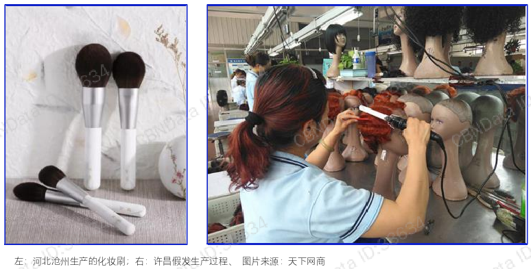 中國現有產業帶中藏著很多“網紅“潛力股河北滄州的化妝刷被網友認證為“國貨之光”;“假發之都”許昌出產的假發已征服了全球120個國家和地區的消費者。